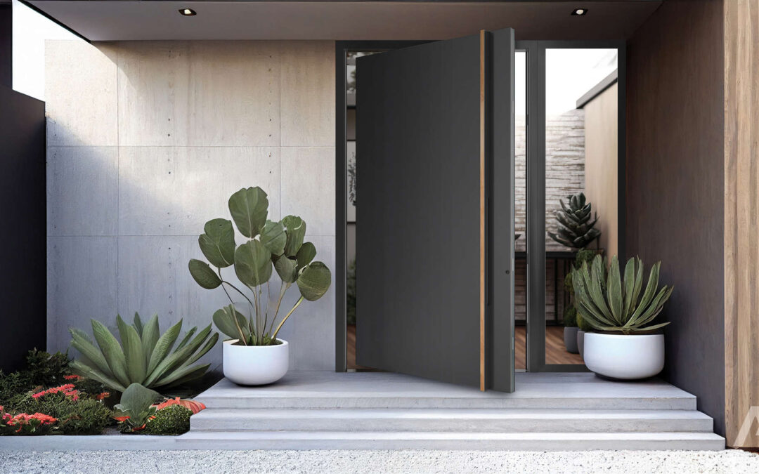 Metaliczne i matowe wykończenia – w przypadku drzwi aluminiowych lub stalowych dostępne są powłoki w różnych odcieniach i fakturach (mat, połysk, struktura), które mogą współgrać z nowoczesnymi elewacjami.