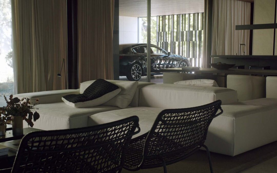 Przeszklenia od podłogi do sufitu tworzą wrażenie otwartości i łączą wnętrze z otoczeniem.